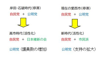 <現在の与党会派は、岸田・石破政権時代の自民党・公明党体制(愛西市)>