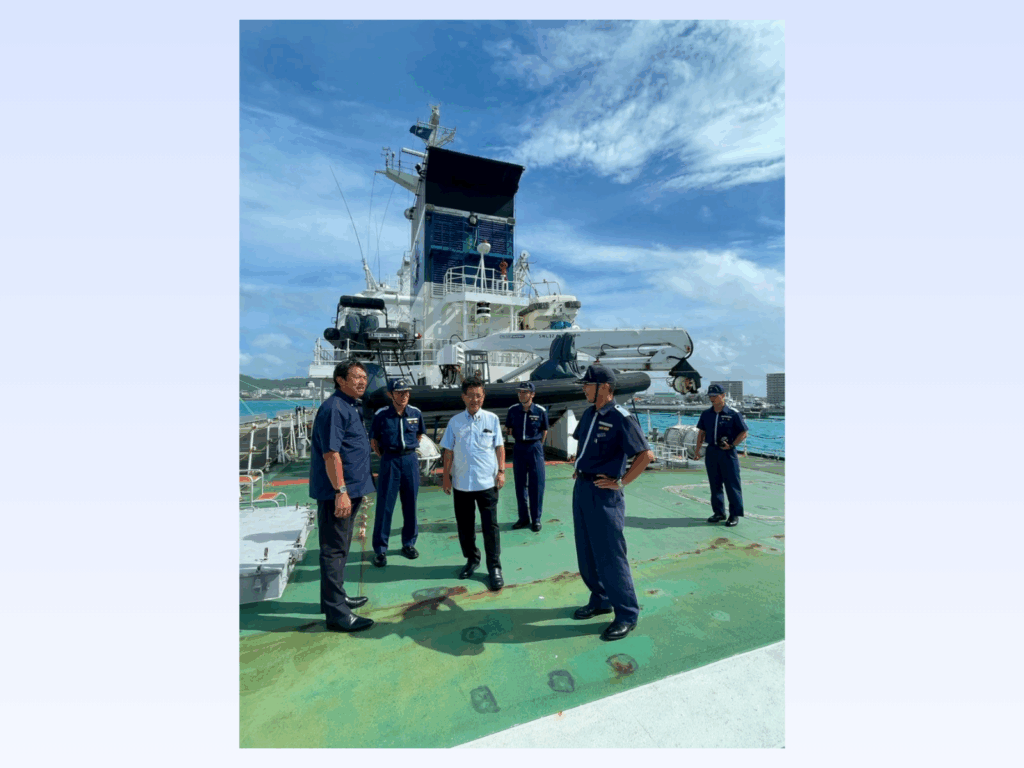 翌23日、海上保安庁石垣海上保安部を訪問、尖閣警備専従部隊の巡視船を視察するとともに、国境警備に現状の説明を受ける。