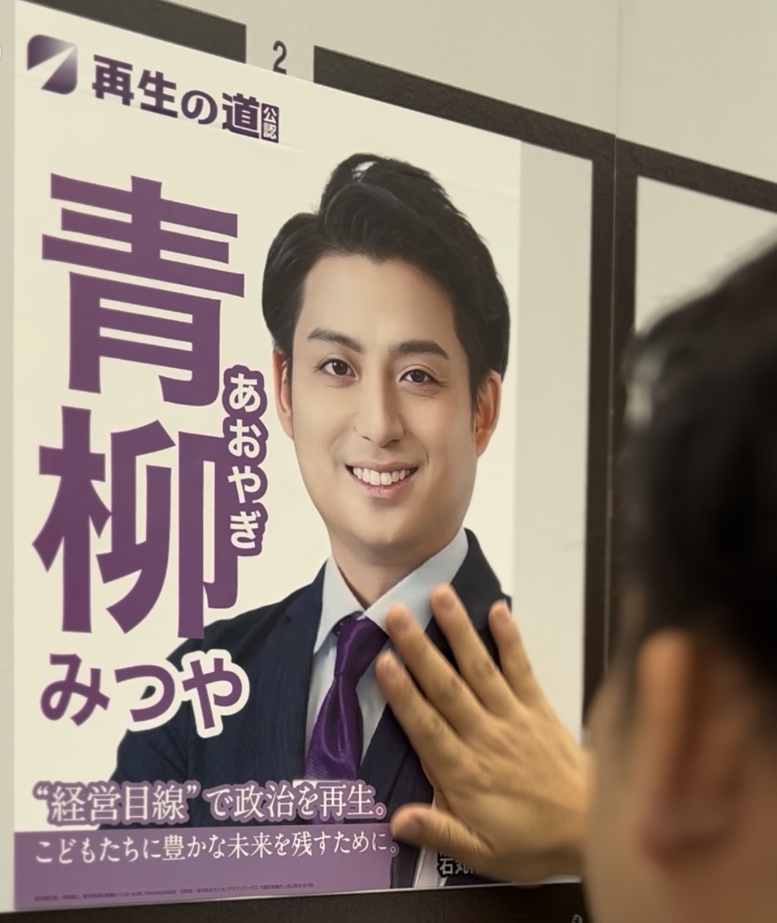石丸伸二代表、地域政党再生の道、東京都議会議員候補者(杉並区)の青柳みつやです。