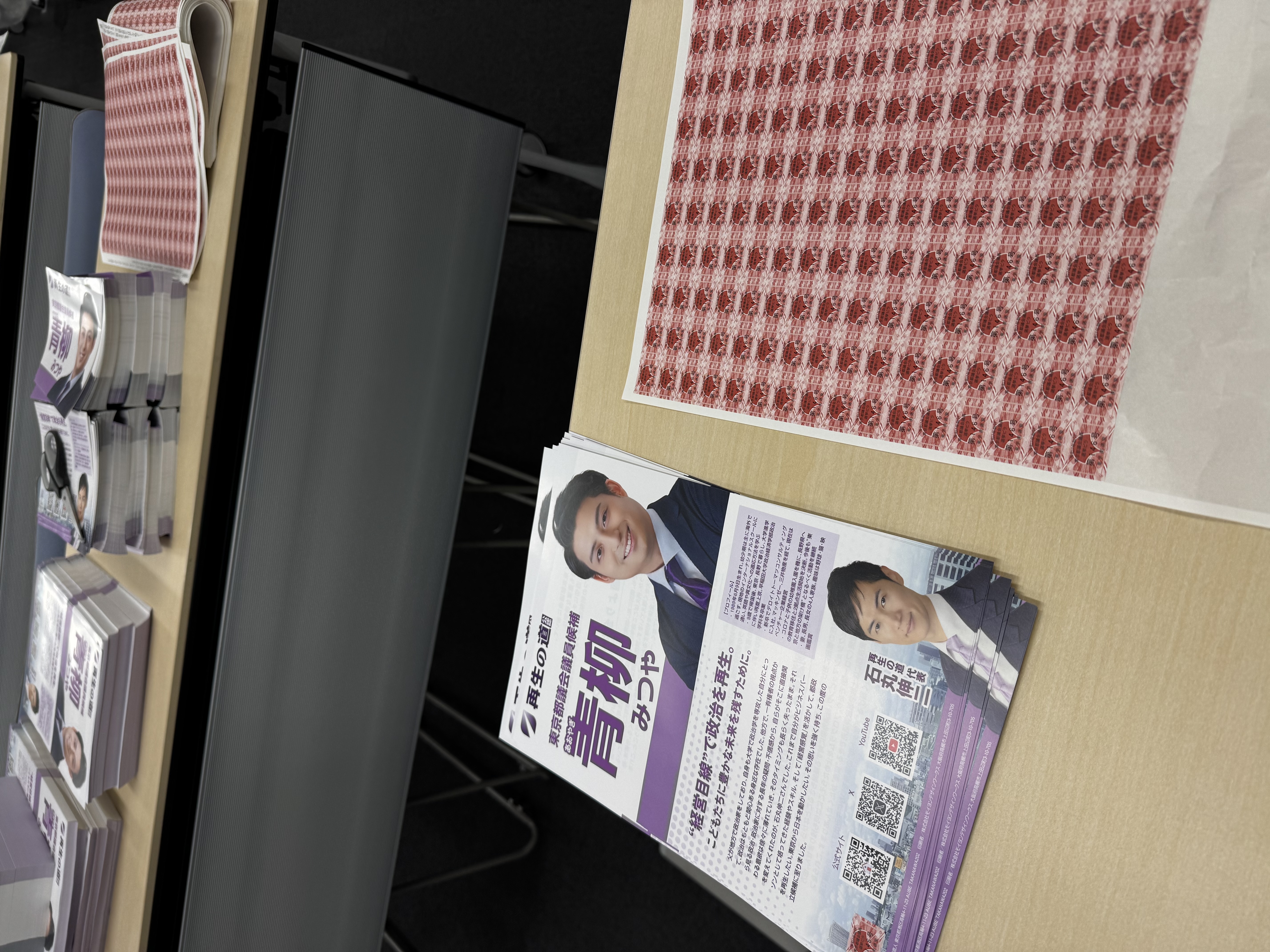 しかしながら、一人当たり16,000枚の大量のビラにシールを貼る作業は本当に大変。ボランティアの皆さんのサポートに心底感謝しつつ、こんなデジタルな時代においてはもっと別のやりかが絶対あるはず。ここ数十年、各候補や政治家は誰も疑問を唱えなかったのだろうか…。