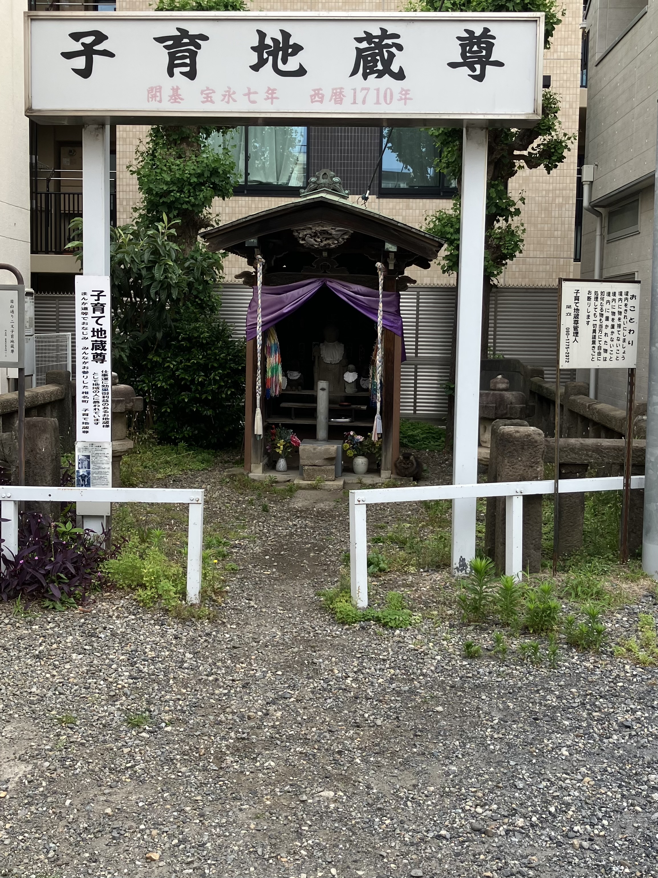 ポイポイ清掃を続けていると、路地の奥に地蔵様がいました。