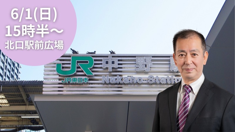 ホーム>政党・政治家>岩崎 あきら (イワサキ アキラ)>6/1(日)15時半スタート!中野駅北口駅前広場にお越しください! 詳しくはこちら⇓⇓http...