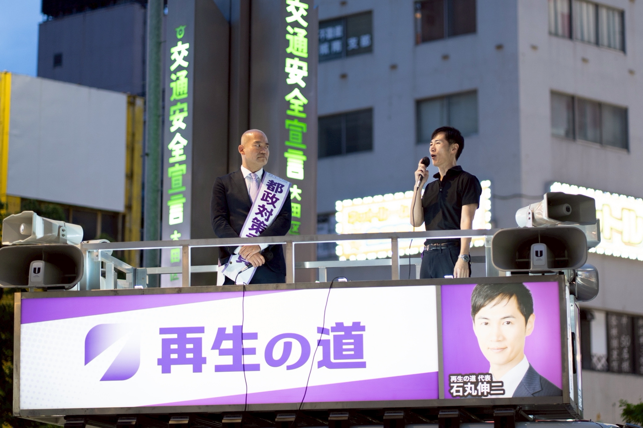 夕方には蒲田駅前にて、石丸代表を迎えての共同演説会を実施しました。警察との事前相談、ボランティアスタッフとの連携、当日の進行など、準備には手探りの部分も多くありましたが、各方面のご協力により、無事に開催することができました。