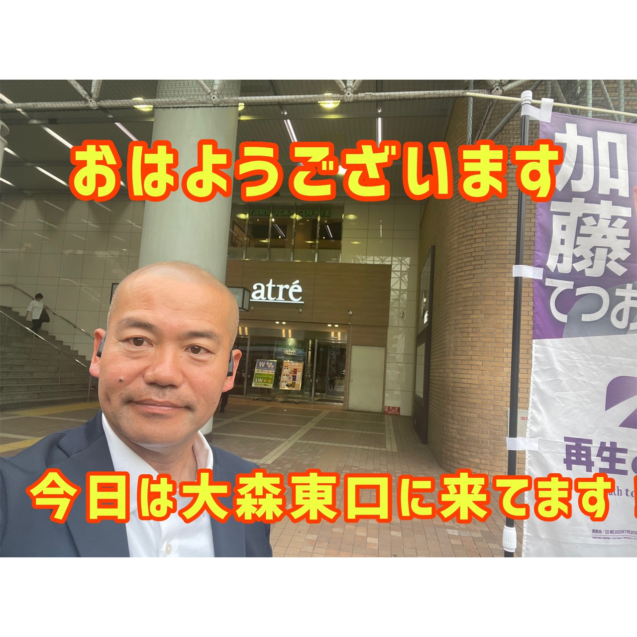 2025年6月9日、大森駅東口にて朝のご挨拶を行いました。繰り返し足を運ぶ中で、こうして「再会」が生まれる瞬間に立ち会えることは、この活動の中でも特に嬉しい時間です。