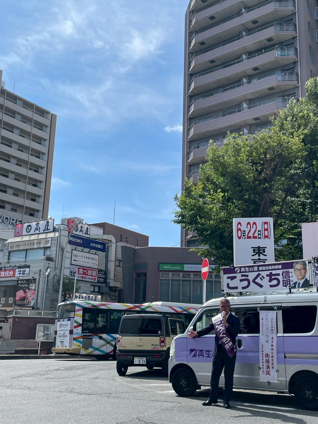 本日、快晴の空の下、つつじヶ丘での最後の駅頭演説を行いました。