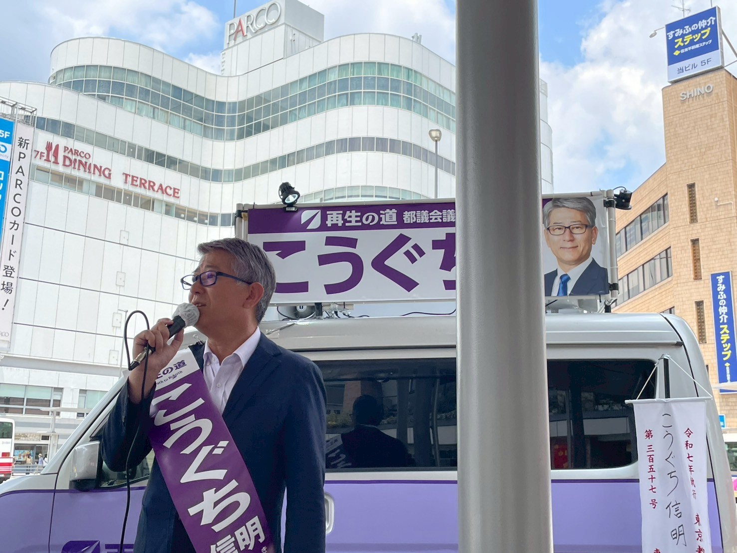 ホーム>政党・政治家>こうぐち 信明 (コウグチ ノブアキ)>いよいよマイク納め。19時30分、調布駅でお待ちしています