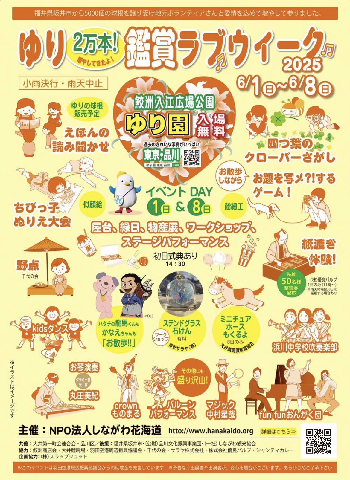 本日は鮫洲入江広場公園の『ゆり鑑賞ラブウィーク』にお邪魔しました。https://shinagawa-kanko.or.jp/event/lily-samezu2025/