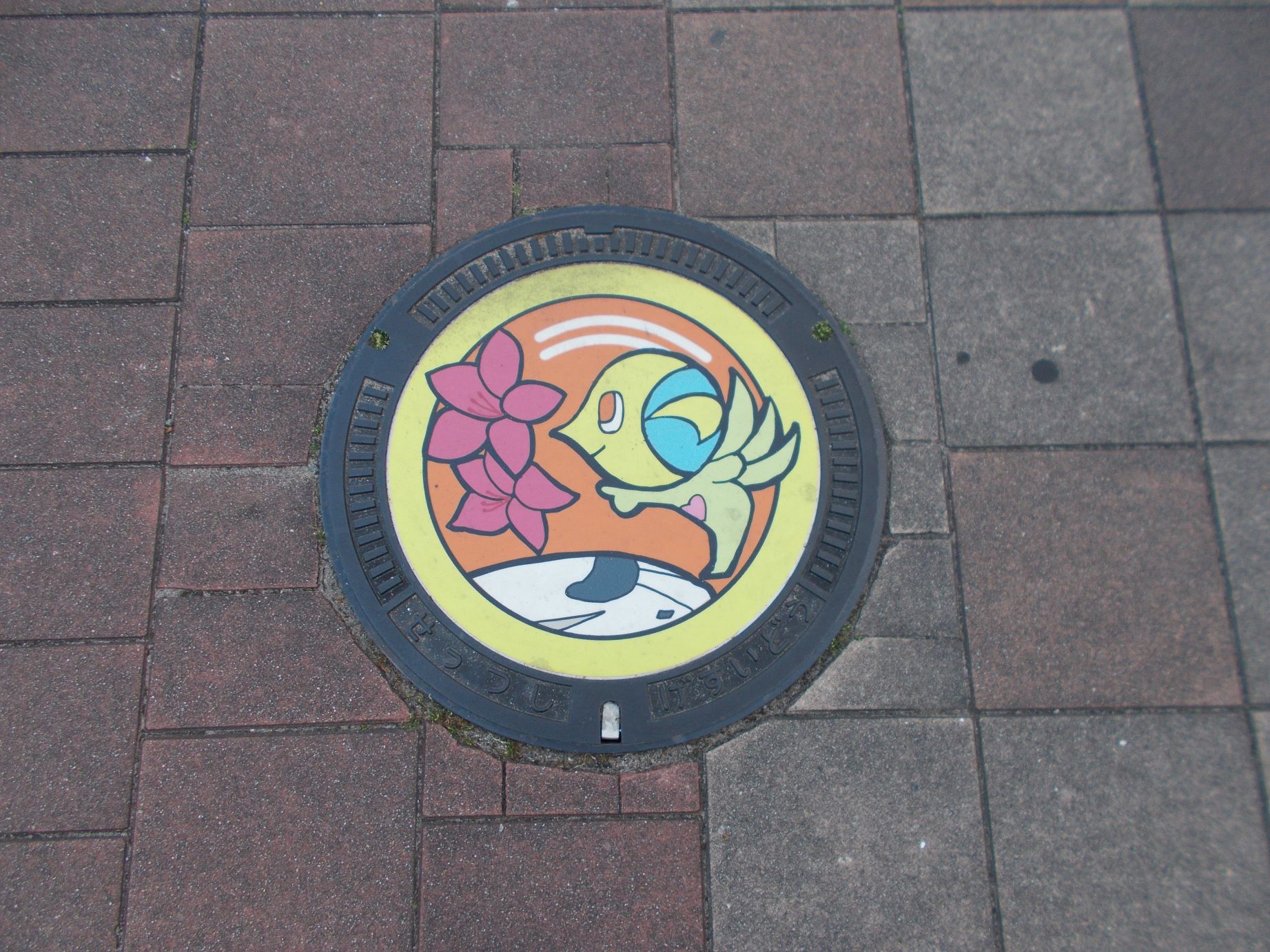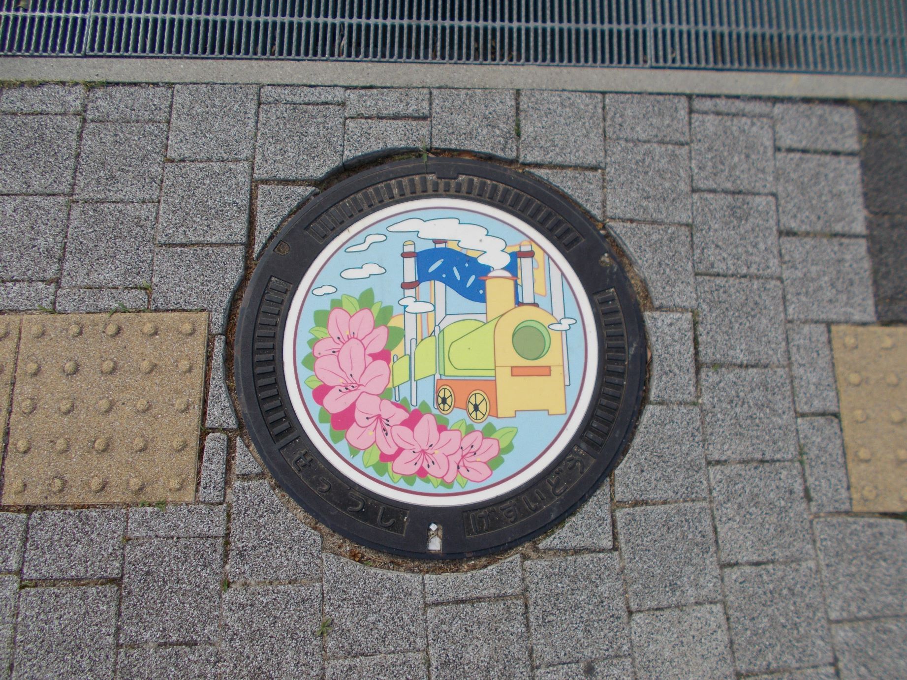 知る人ぞ知る、マンホールアートです。市の花ツツジも描かれています。