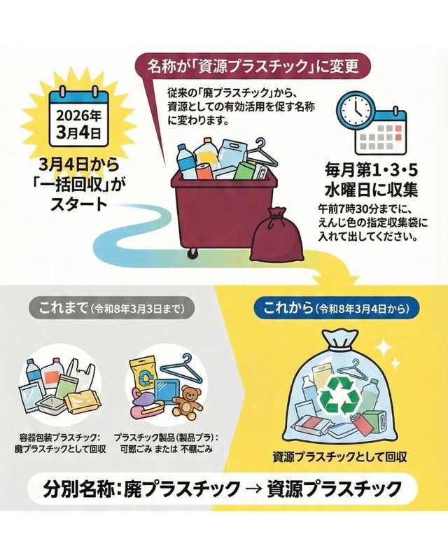 ごみの分別方法が見直され、「プラスチック一括回収」が始まります。
