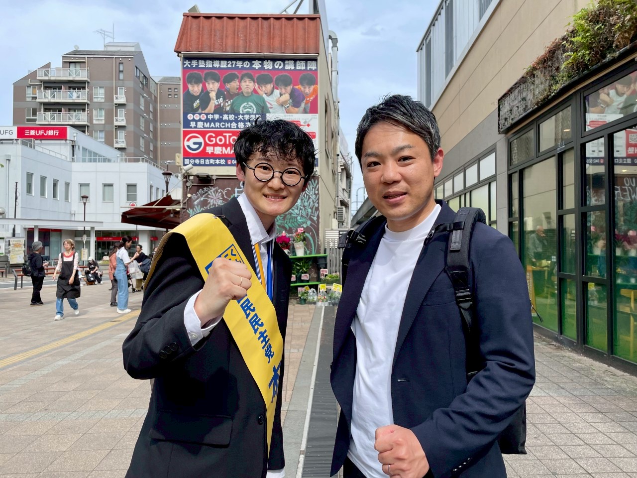 5/11の街頭演説会で通りがかった国立市長の濵﨑真也さんがいらっしゃいました!