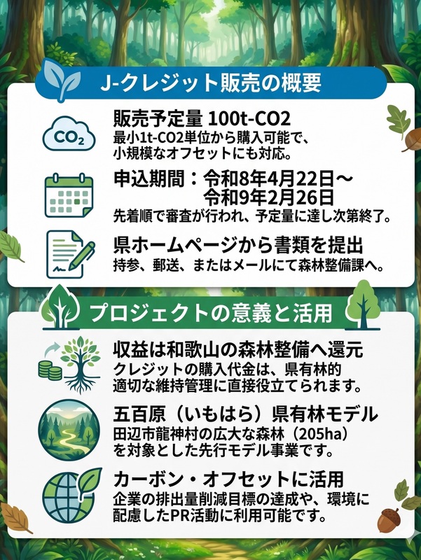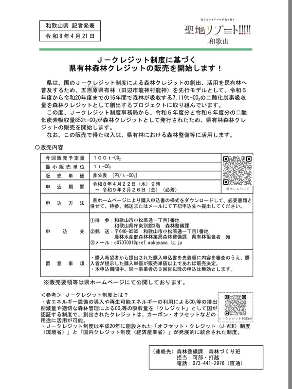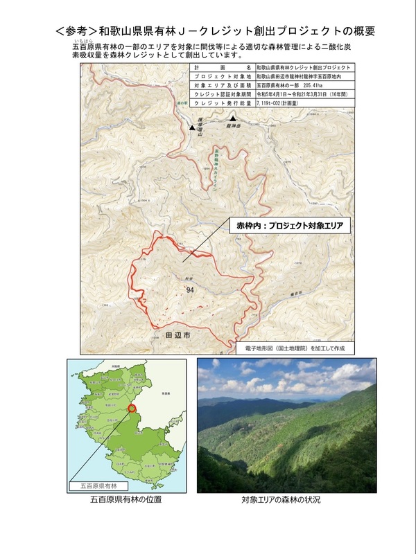 現在、田辺市の五百原県有林で生み出された「J-クレジット」の購入希望者を募集中です。