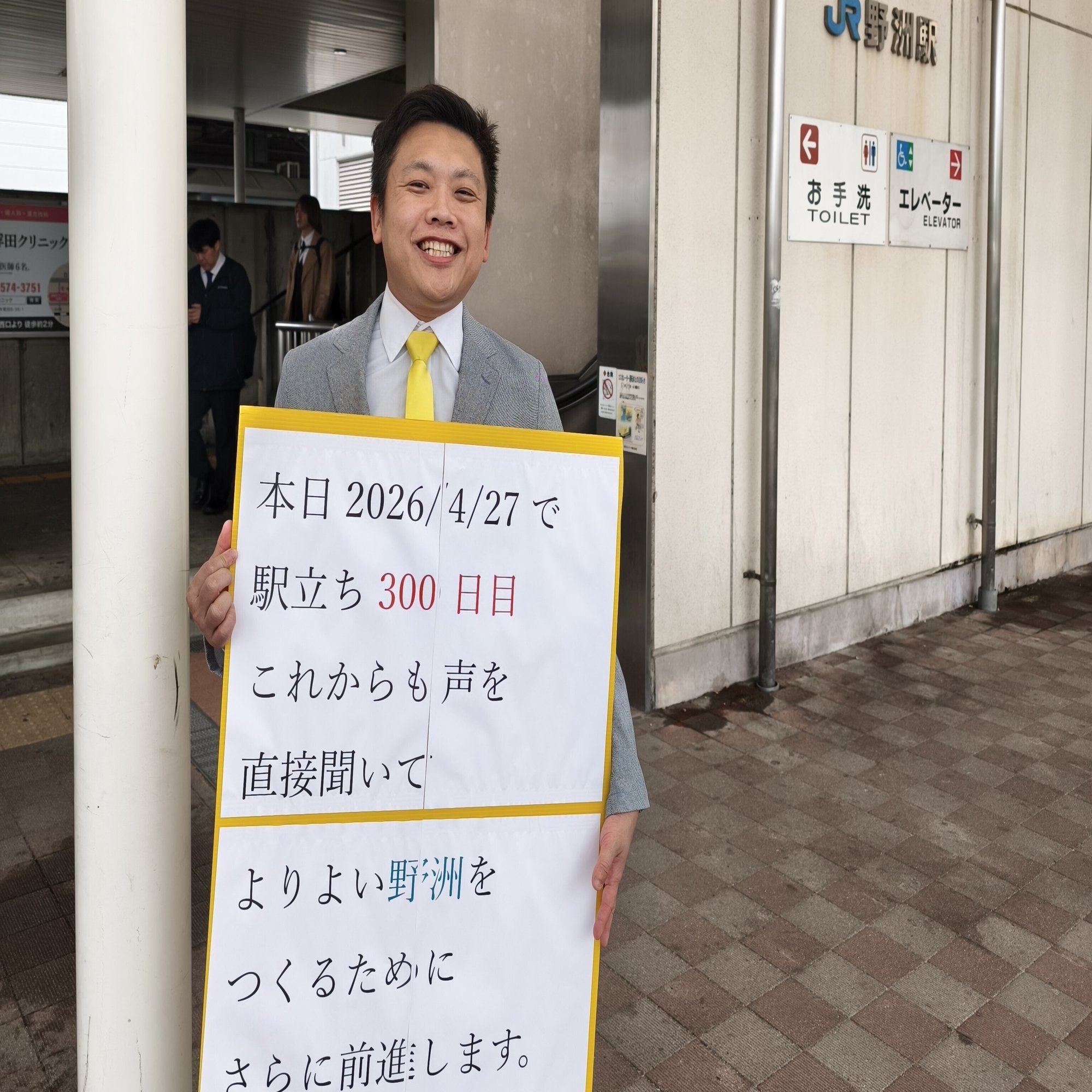 2025年7月1日から始めた野洲駅での駅立ちは、本日4/27でちょうど300日を迎えました。