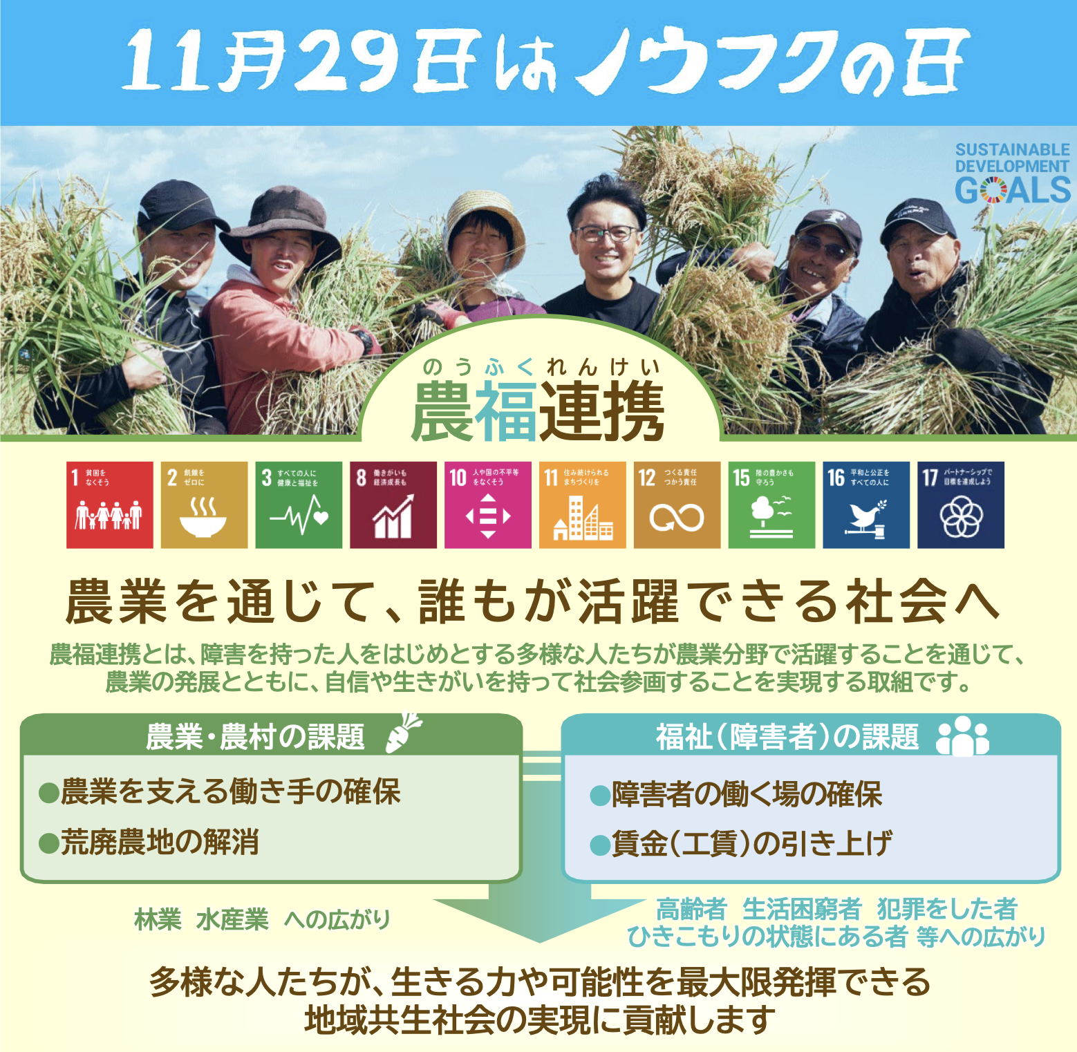 令和6年に改定された「農福連携等推進ビジョン」では、11月29日が「ノウフクの日」として制定されました。