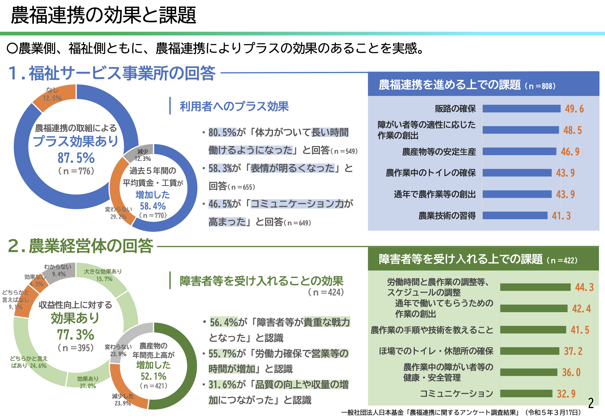 と回答しており、農業と福祉の双方にメリットがある取組であることがわかっています。