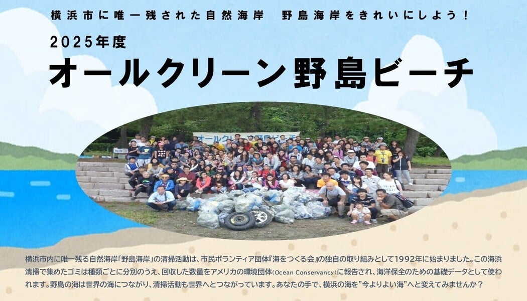 この活動は、オールクリーン野島ビーチ実行委員会と公益財団法人よこはまユースが主催し、横浜市に唯一残された自然海岸を守ることを目的として、年4回実施されています。
