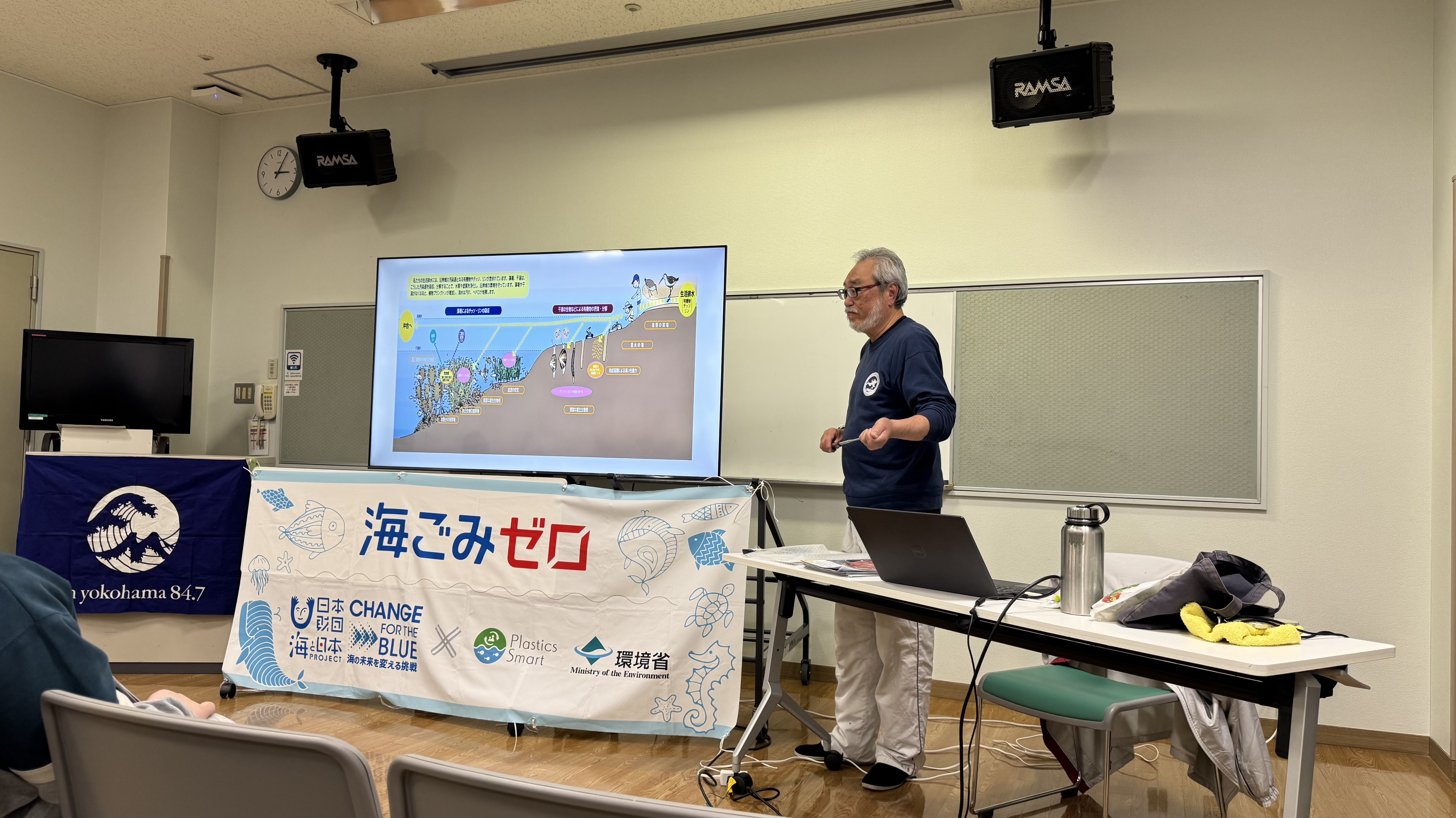 清掃後は、会場を横浜市野島青少年研修センターへ移し、坂本昭夫さん(海をつくる会事務局長)による講義が行われ、海洋ごみ問題や海の生態系について学びました。