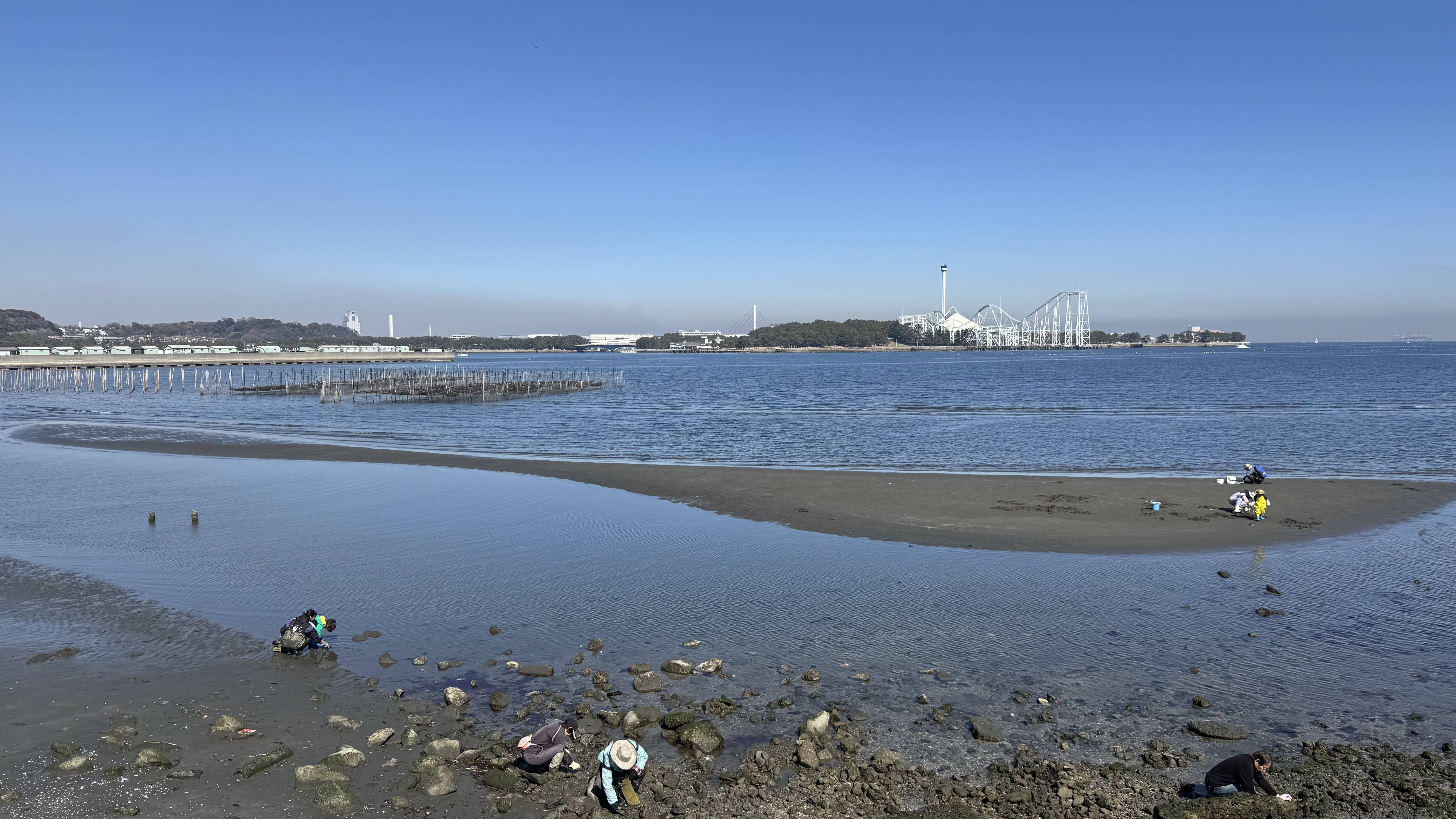 潮が引いた干潟には多くの生き物が暮らし、潮干狩りを楽しむ人の姿も見られました。