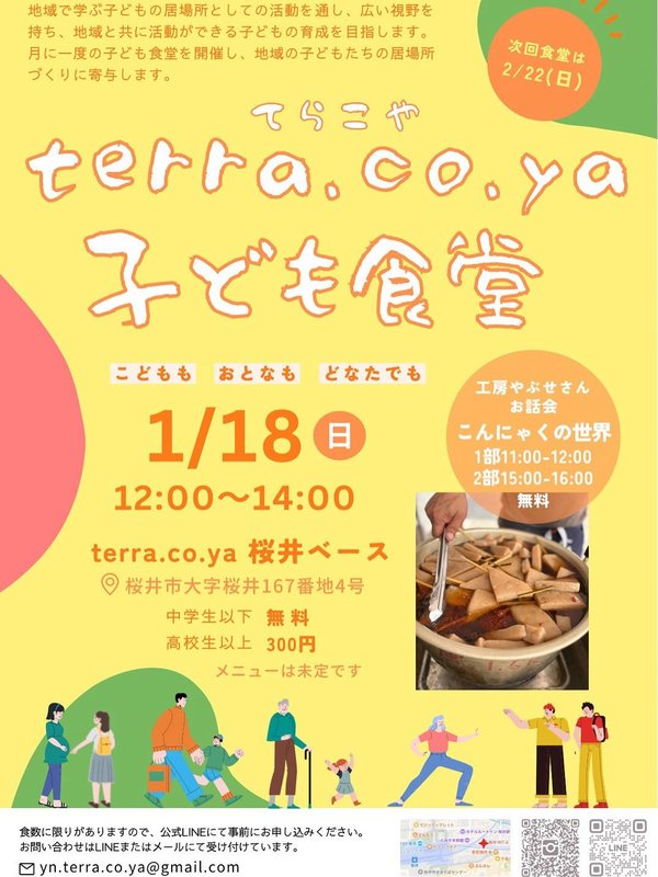 ・キャンセルの場合は、子ども食堂開催3日前までに主催terra.co.ya までご連絡ください。