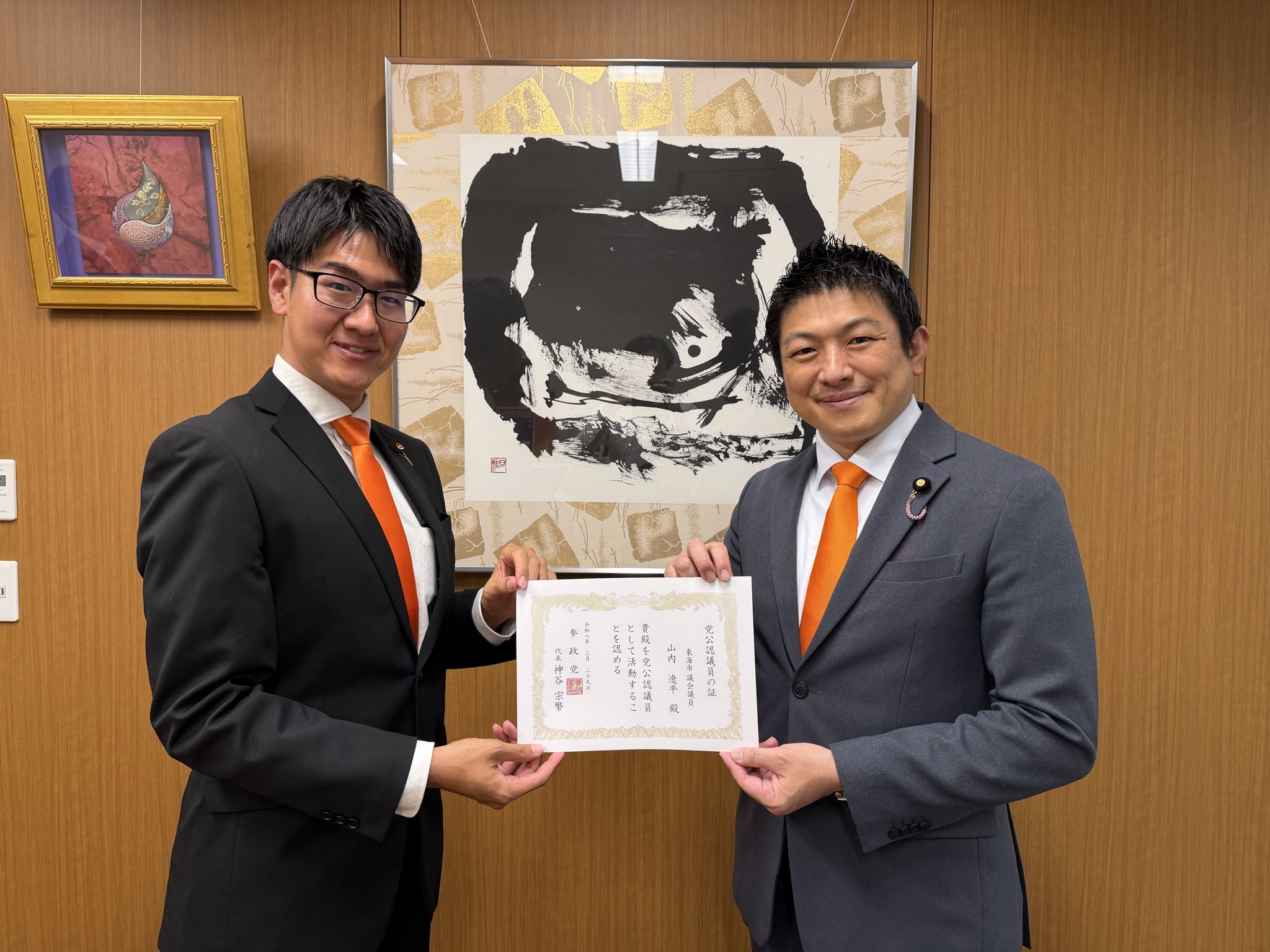 【参政党 東海市議会議員】公認議員証を受け取りました。