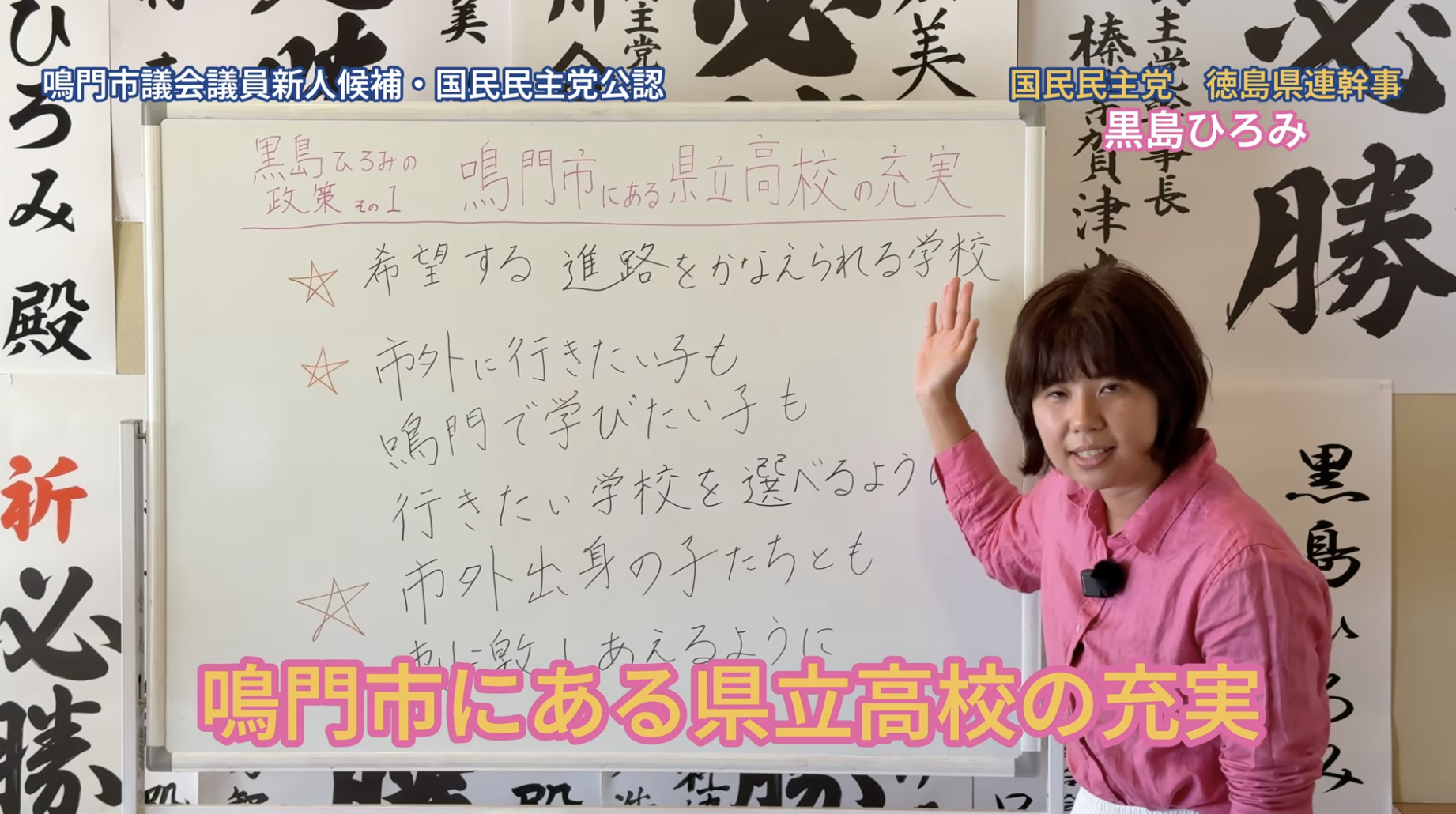 \黒島ひろみ『政策その①鳴門市の県立高校をもっと選べる・学べる場に』YouTube/