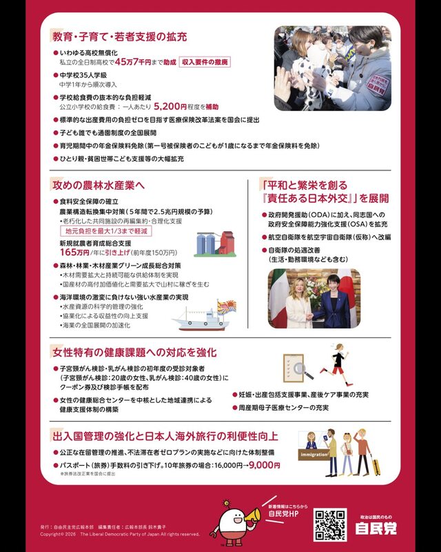 「The Jimin News号外」のご紹介 本号外では、令和8年度予算の成立を踏まえ、中東情勢を受けた緊急対策、賃上げ・手取り増、教育・子育て支援、農林水産業、外交・安全保障等の主な政策項目を掲載しております。ぜひご覧ください。