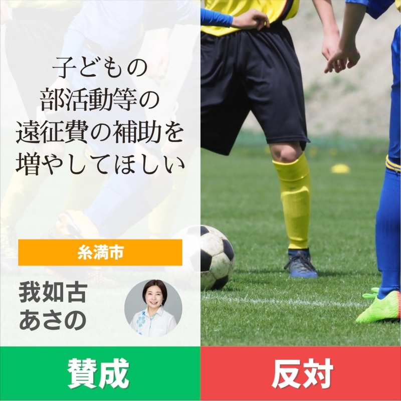 ホーム>政党・政治家>我如古 あさの (ガネコ アサノ)>【経済的な理由などによる子どもの体験格差をなくしたい】特に、離島である沖縄は県外の遠征に行くた...