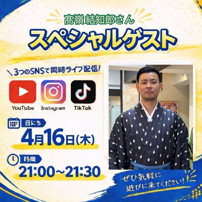髙嶺 結知郎さんをスペシャルゲストにお迎えします🌼