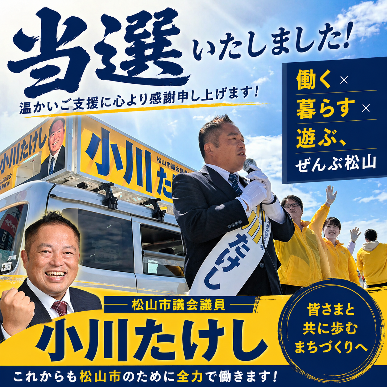 ホーム>政党・政治家>小川 たけし (オガワ タケシ)>当選のご報告と御礼