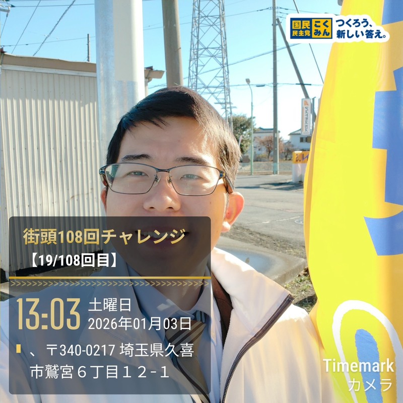 ホーム>政党・政治家>はやま 武士 (ハヤマ タケシ)>【街頭108回チャレンジ&地元回り】今日はとうとう街頭108回チャレンジで20回目に来ました!...