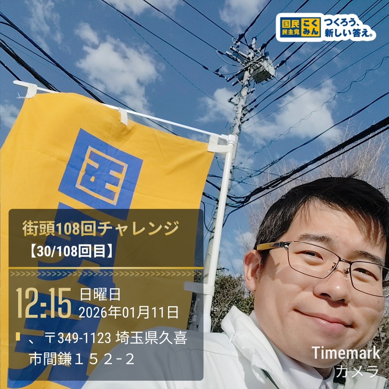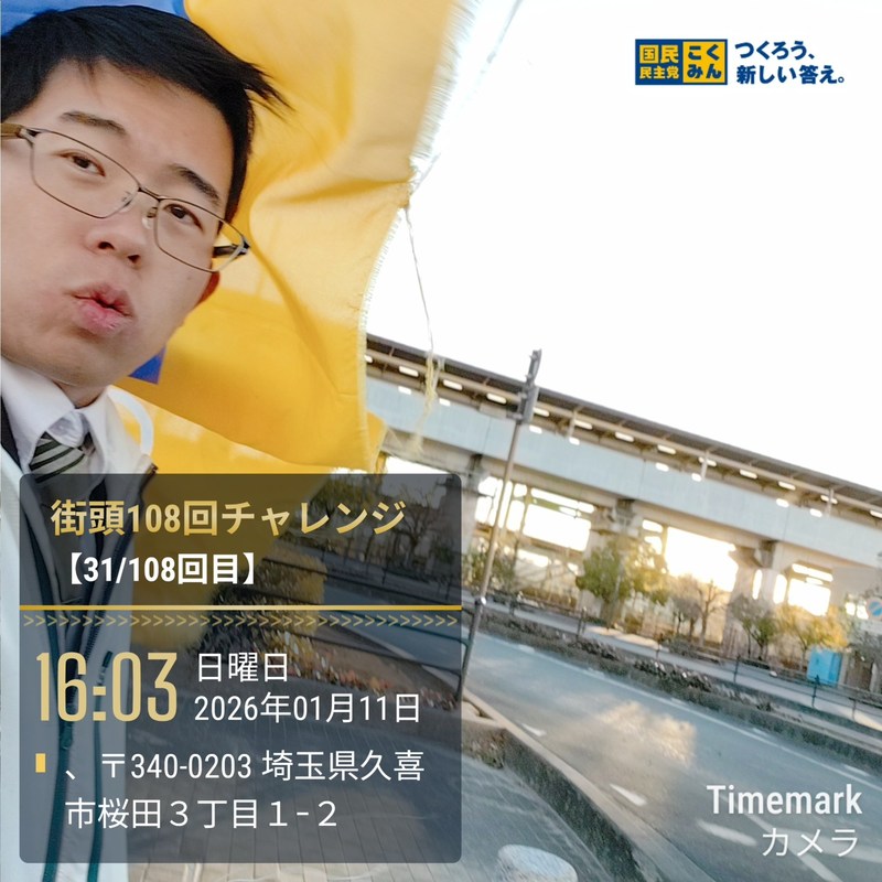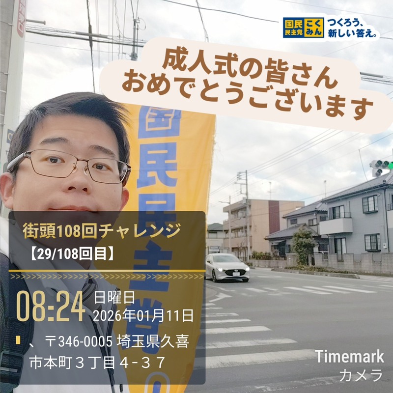ホーム>政党・政治家>はやま 武士 (ハヤマ タケシ)>【街頭108回チャレンジ】今日は久喜市内で成人式が行われました🛺🎉今の成人の皆さんの生まれた時...