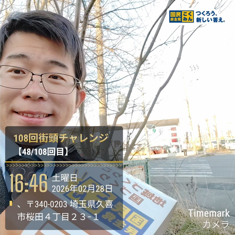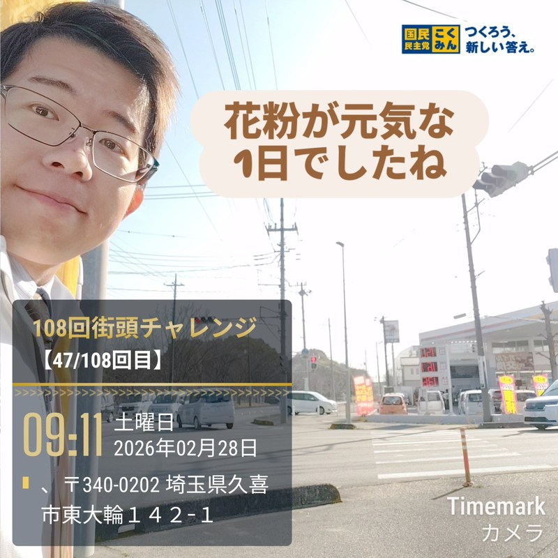 【108回街頭チャレンジ】 朝夕と同じ交差点に立ち「交通量が多く白線がすぐ消えて困る」との切実な声を頂きました。現場に立つから聴こえる課題です 道中、市指定文化財『渡辺多門家のタブノキ』の巨木に感動。歴史あるタブノキと、吹き荒れる強烈な花粉で自然を感じる、1日でした🛺 #はやま武士