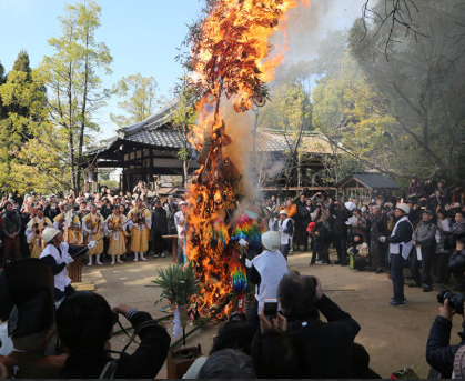そもそも「左義長」とは、門松や正月飾り、書き初めなどを持ち寄って燃やし、神様を見送るという、平安時代からある日本独特の文化に基づく伝統行事です。私の幼いころには、この国霊神社では、竹を組んで火をつけて、そこに正月飾りを投げ込み、炎が大きく燃え上がるという、とても壮大なものでした。また、その残り火で、餅やサツマイモを焼いて、それを食べた、その印象は今でも強く残っています。