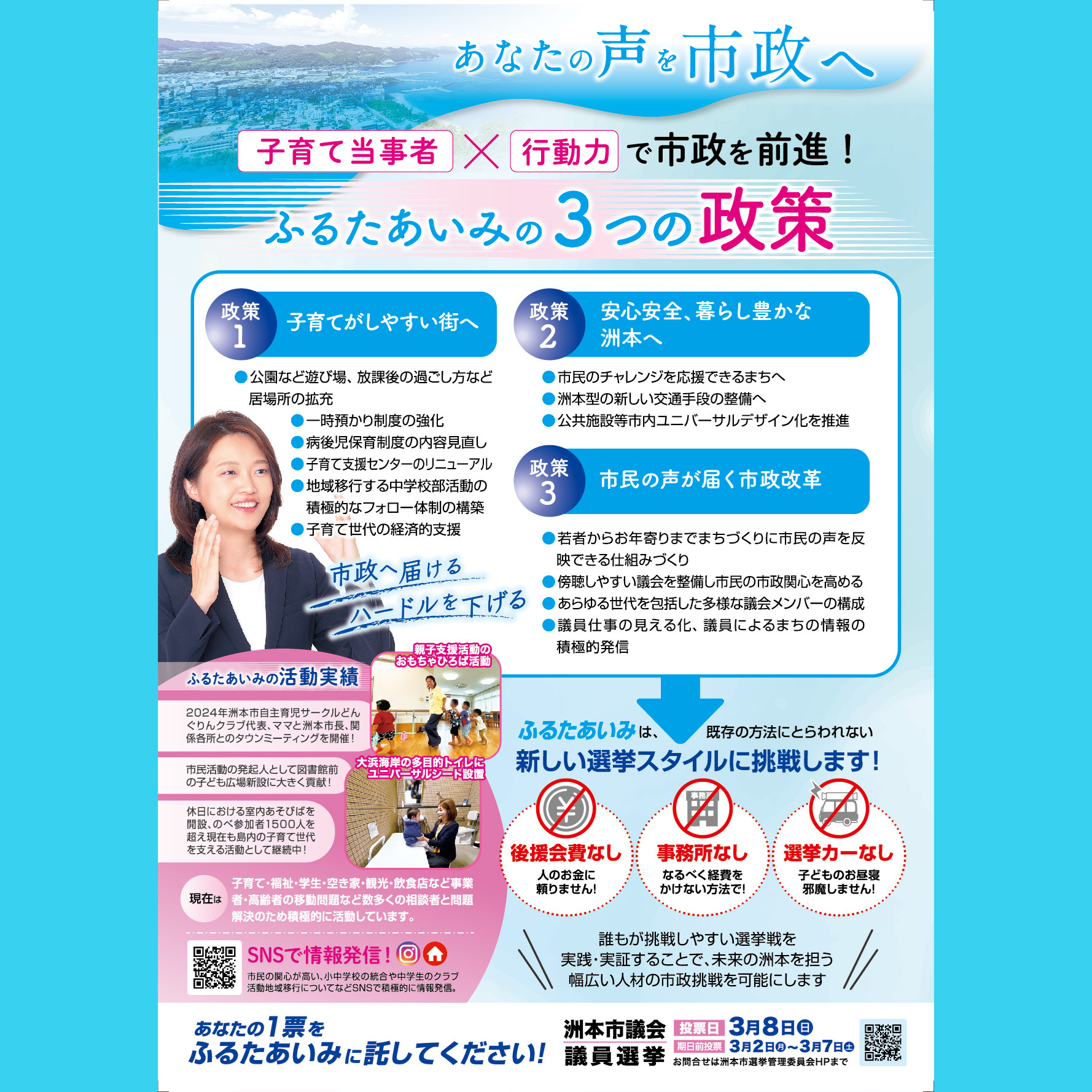 ホーム>政党・政治家>ふるた あいみ (フルタ アイミ)>ふるたあいみを応援してください!