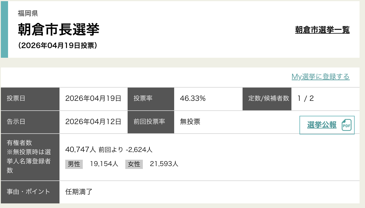 ホーム>政党・政治家>山片 賢一 (ヤマガタ ケンイチ)>朝倉市長選挙の衝撃
