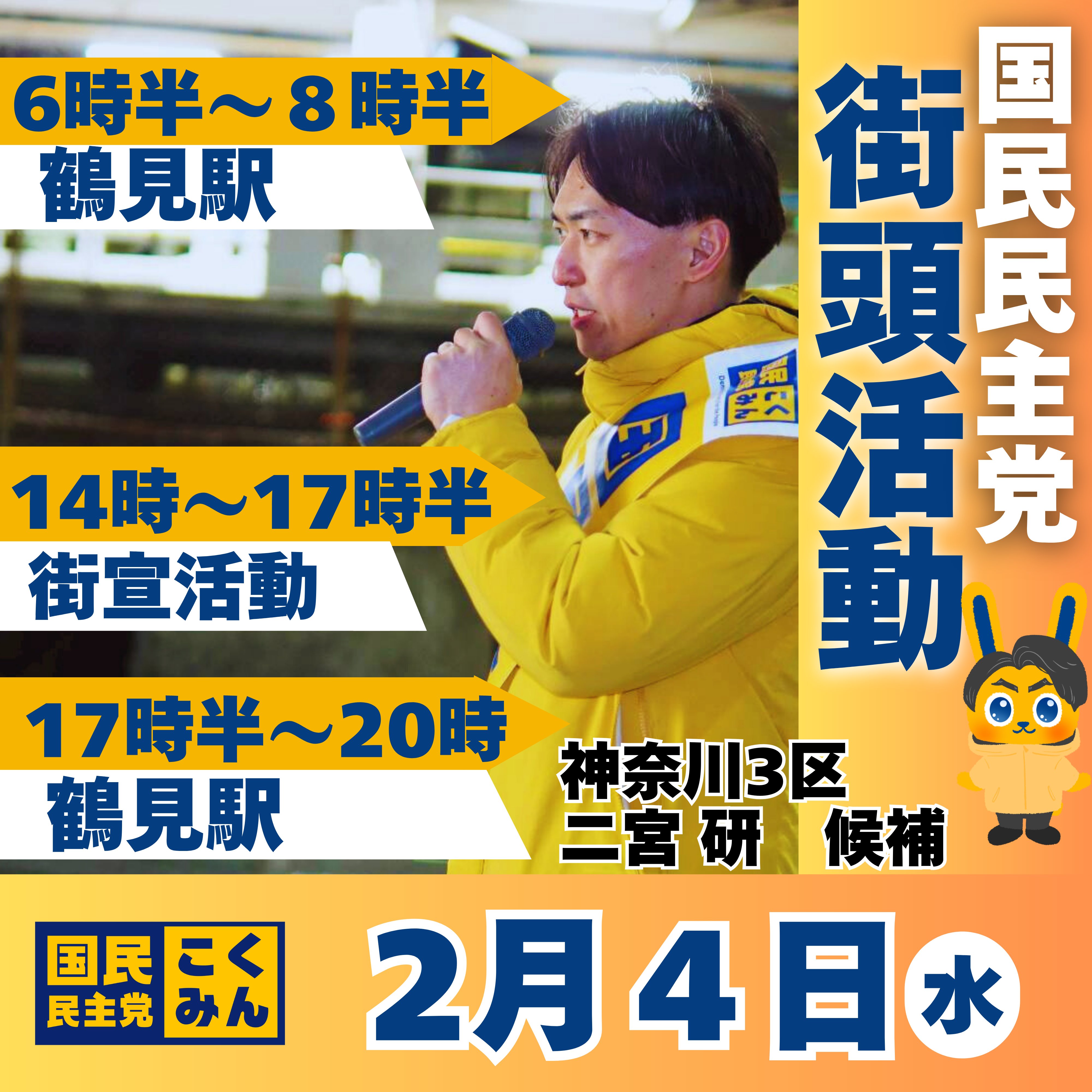 ホーム>政党・政治家>二宮 研 (ニノミヤ ケン)>2月4日(水)の活動予定