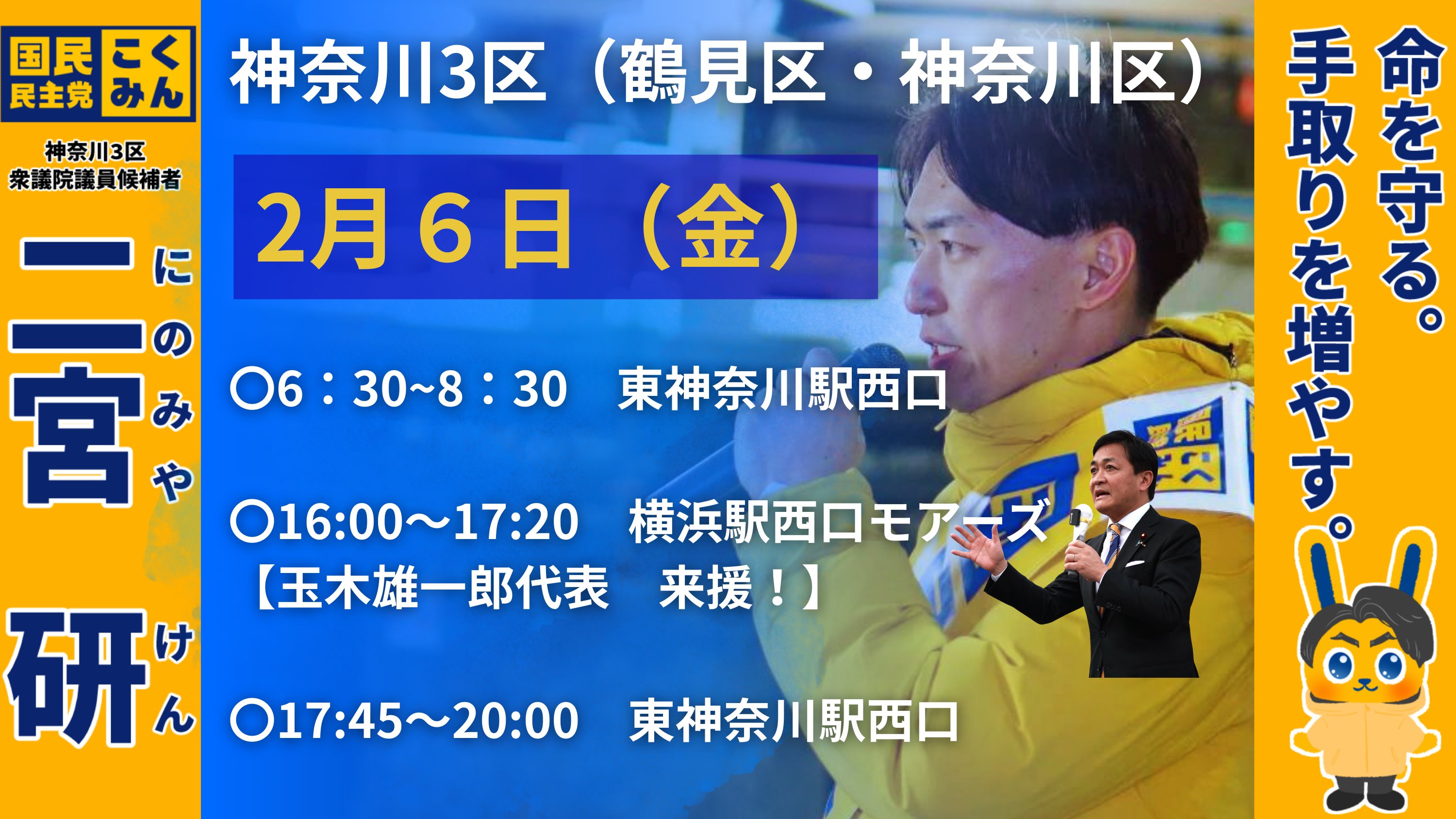 ホーム>政党・政治家>二宮 研 (ニノミヤ ケン)>2月6日(金)の活動予定(玉木雄一郎代表 来援!)