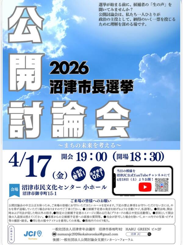 【2026年 沼津市長選挙 公開討論会 開催のお知らせ】