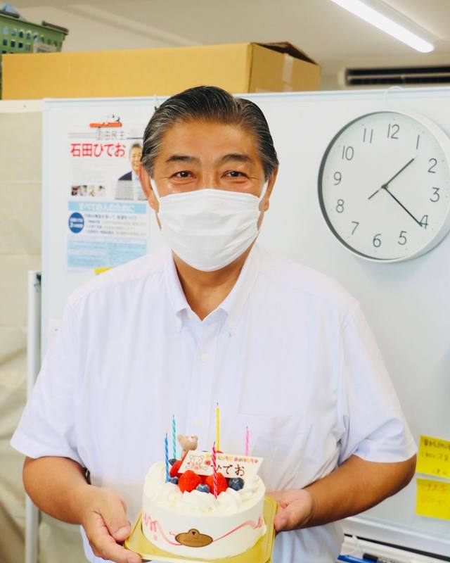 ホーム>政党・政治家>石田 ひでお (イシダ ヒデオ)>昨日は石田ひでお区議の誕生日だったので、事務所にいたメンバーでささやかなお誕生日会を開きました...