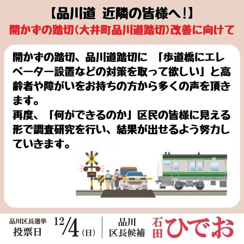 ホーム>政党・政治家>石田 ひでお (イシダ ヒデオ)>【品川道】#石田ひでお#品川エリア別政策をお伝えします!#大井町駅の#品川道近隣の皆様には、開...