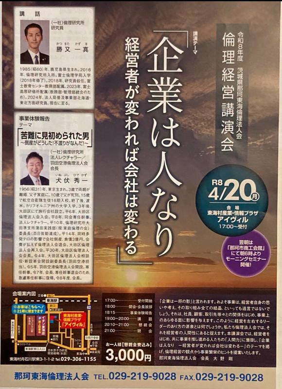 30年来会員である倫理法人会。明日は茨城県那珂東海倫理法人会の倫理経営講演会にお招きいただきました。いや、正確には一般社団法人倫理研究所から派遣されました、です。