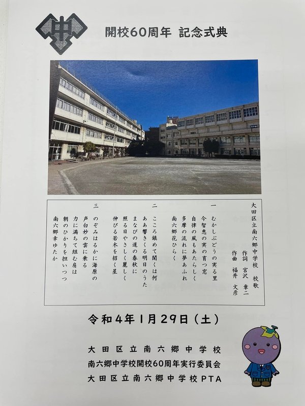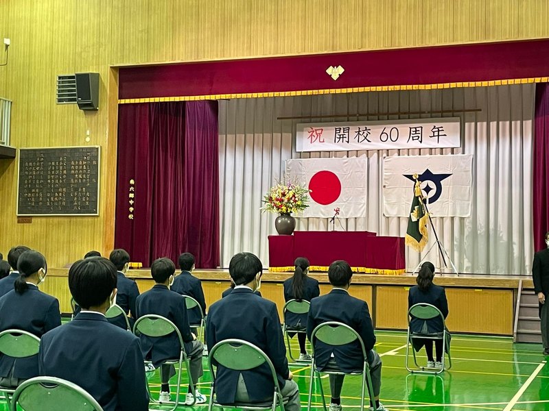今日は、地元の区立六郷中学校開校60周年記念式典にお招きいただきました。