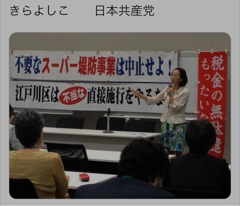 日本共産党のマドンナと呼ばれた女性参議院議員も堤防反対を訴えていましたが、江戸川区は区外への避難をすすめる住みにくい区となってしまいました。
