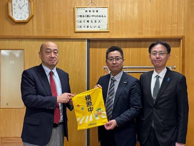 日本介護クラフトユニオンから児童の交通安全のため横断旗を寄贈したいとのご相談を受けていましたが、本日、地元地域の志村第二小学校の校長先生にお届けしました。児童の安全に役立てば幸いです。