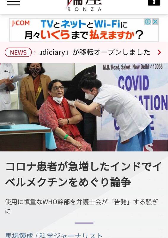 『コロナ患者が急増したインドでイベルメクチンをめぐり論争・使用に慎重なWHO幹部を弁護士会が「告発」する騒ぎに』