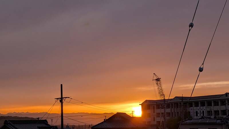小諸義塾高校の校舎に沈む夕陽が綺麗でした。