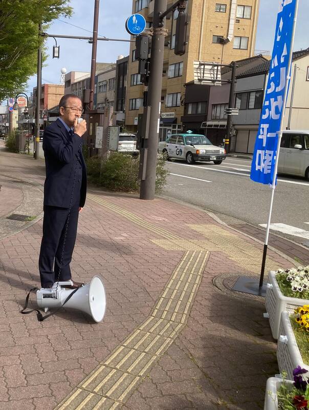 ホーム>政党・政治家>森 かずとし (モリ カズトシ)>石引下馬地蔵さん前で社民党の声 トランプは、ネタニヤフは戦争やめよ! これ以上人を殺すな! ...