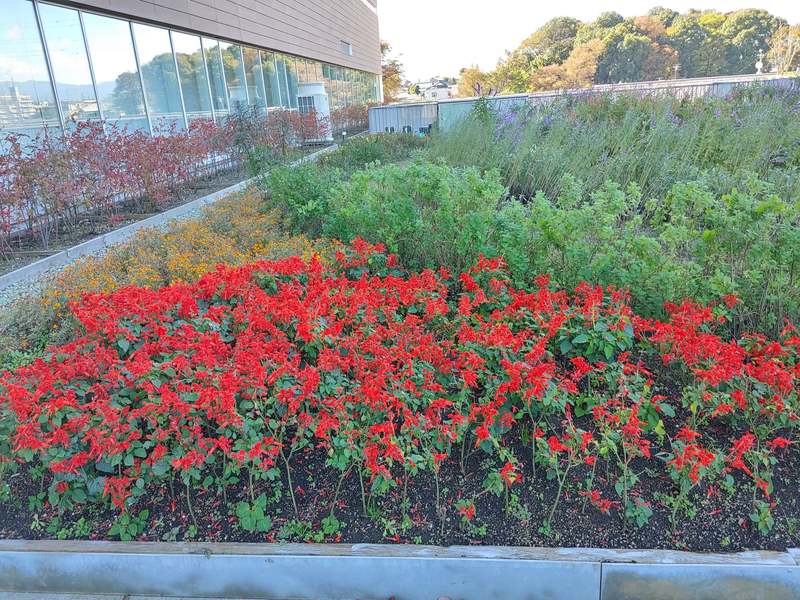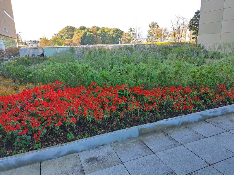 本日の町田市役所4階にある、屋上花畑です。