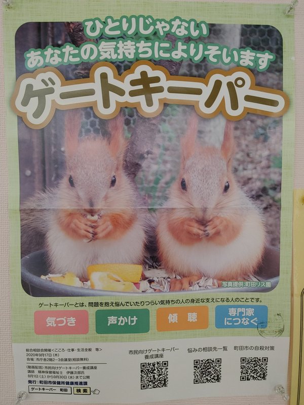 町田市生涯学習センターに、ゲートキーパーのフライヤーが貼られていたので、写真に収めました。