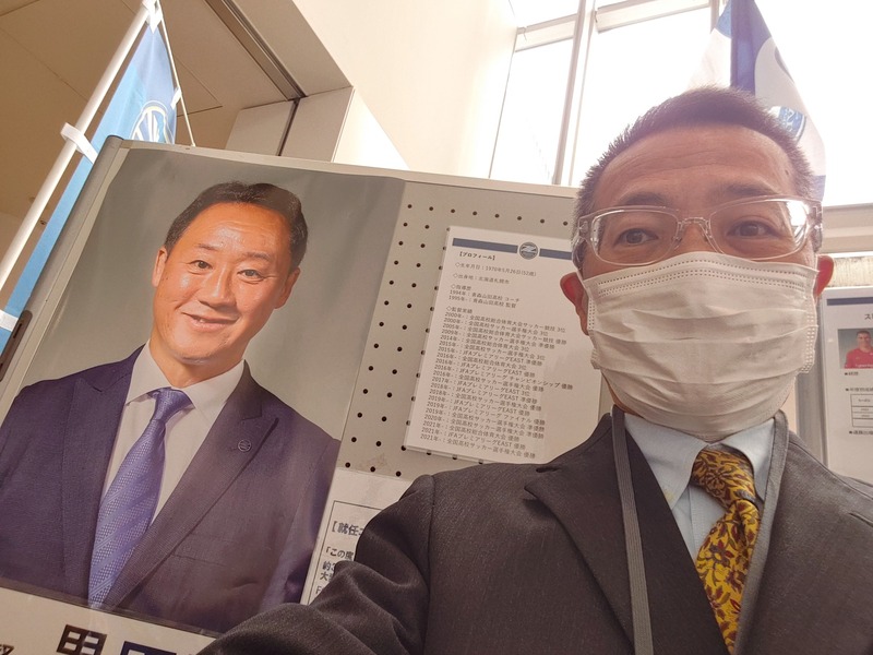 もちろん、わたしもゼルビアを応援しております。2ショット写真は、黒田剛監督です。