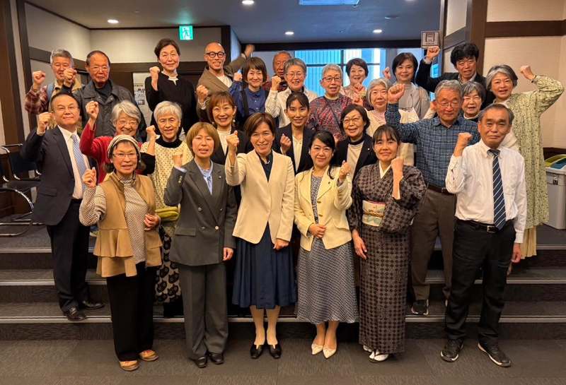 そして、これからの高市政権下では、円安誘導による止まらない物価高、そして、対中摩擦による防衛増税が待っていますが、わたしが目指す人の命と暮らしを中心に置いた真っ当な民主主義、そして何より、「二度とこの国を戦場にはしない」ための平和を前提とした経済政策が、必ず、国民の皆様の必要な政治勢力となるはず。その選択肢を、この地に作るべく、力を尽くすこと、とりわけ、その基盤となる来年の統一地方選をはじめとした各種選挙にも、200%の力を発揮していくことをお約束させていただきました。